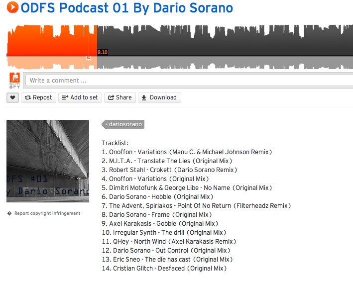We would like to thank Dario Sorano for the support of Robert Stahl's track 'Crokett' in his own Remix Version at his One Day Four Songs Guest Mix. Robert Stahl's great EP will be released soon and got huge support of Spark Taberner, Electrorites, D.A.V.E The Drummer, Elbodrop, Albert Kraner, DavidChristoph and many many more. Check this huge techno show!!!