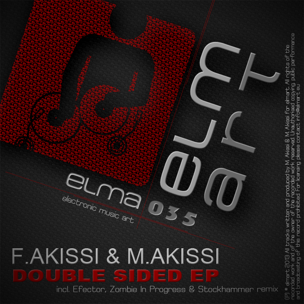 ELMA035 is released on 6th of August 2013 and is featured by French brother duo F.Akissi & M.Akissi, who deliver two banging tracks. The first, called 'Double Sided' is remixed by Efector. He is born in Lissabon and released on huge labels like Naked Lunch or Elektrax Recordings. The second original track 'Alert' is remixed by Zombie In Progress (Viral Outbreak, Hitmusik) and elmart producer Stockhammer. Huge support by D.A.V.E. The Drummer ('Sounds Good'), Spark Taberner ('Double Sided (Original) and Efector's remix are really good! Ill play them!'), Vegim ('Great release. Will try all the tracks out. Will chart (Stockhammer Remix).'), A-Brothers ('nice sounds from the brothers. we prefere the originals. thanks!!'), Cristian Varela, Tim Maas, Elbodrop, Sync Therapy, DavidChristoph and many many more!! Make sure to get your legal copy. |